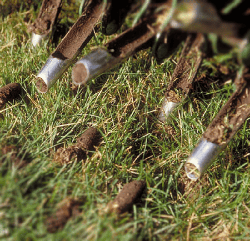 Sometimes we get asked why we are doing core aeration at different times [later] than our competitors. That is because we time it to the cycle of nature not our billing cycle. We want you to receive the maximum benefits from this important service. When a tea regimen is accompanied by core aeration and overseeding with leaf mulch, your lawn will be biologically rich, organically lush, green, sustainable, healthy and less weedy. Over time, as a sustainable soil food web is established, less time and materials are needed to maintain the lawn.